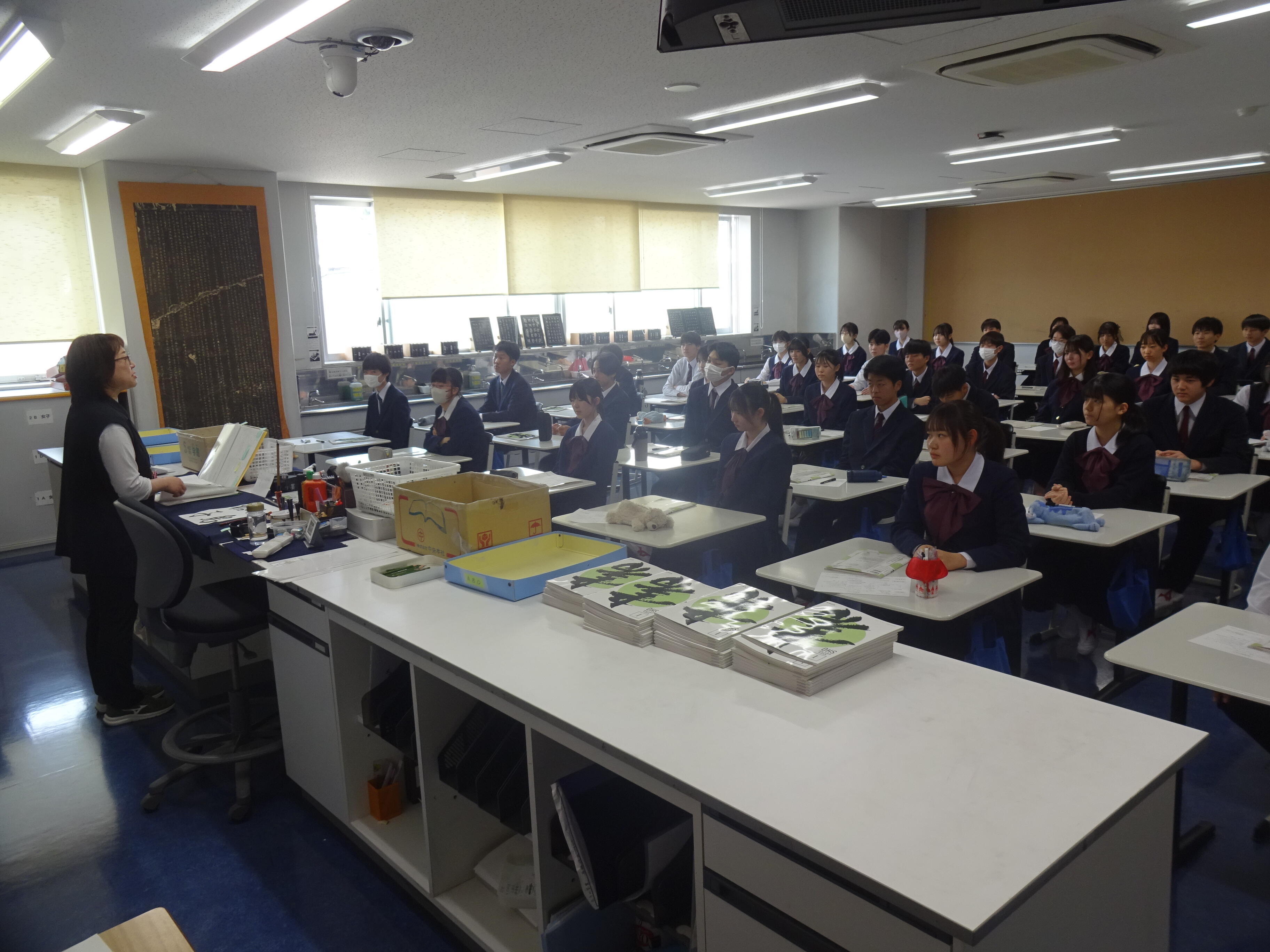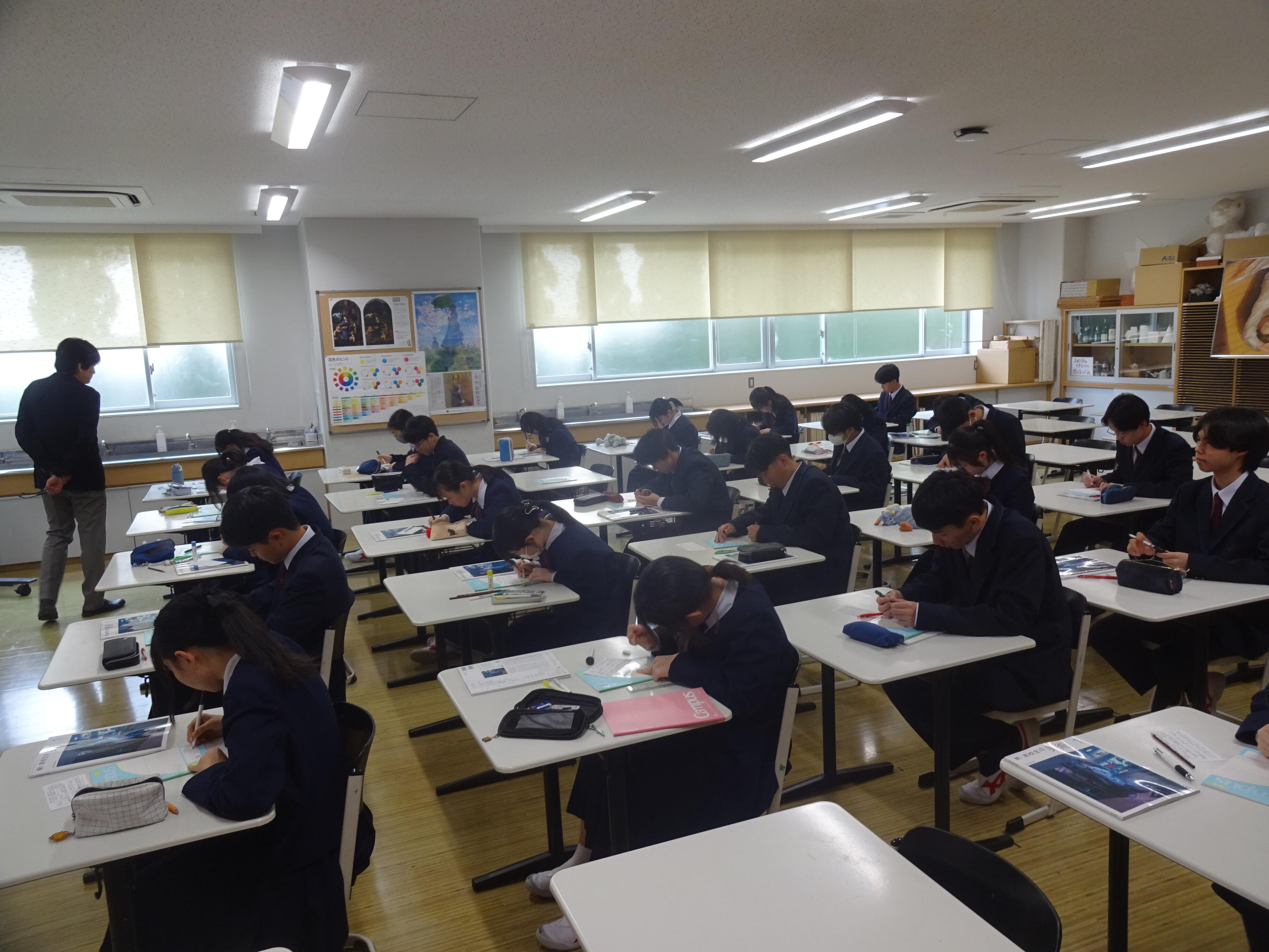 芸術は文理と一貫が混ざって授業を受ける、数少ない科目の一つです。普段は異なる教室で受けている二つのコースですが、芸術と体育は合同で授業を受けていきます。昨日の学年集会でも伝えたように、お互いのよい点を見習って、刺激を与え合ってください。授業を通して、また部活動を通して、様々な人と出会ってください。