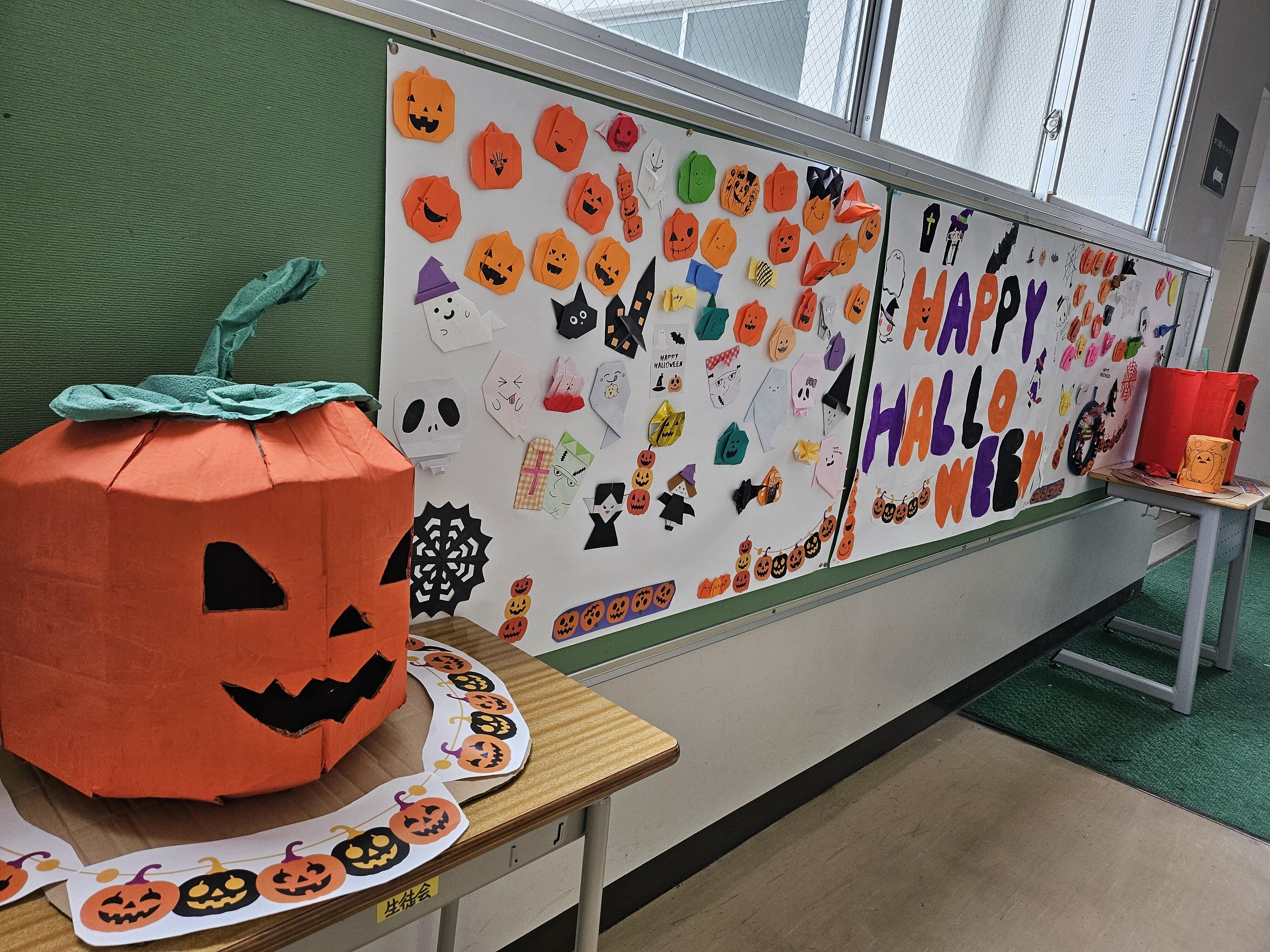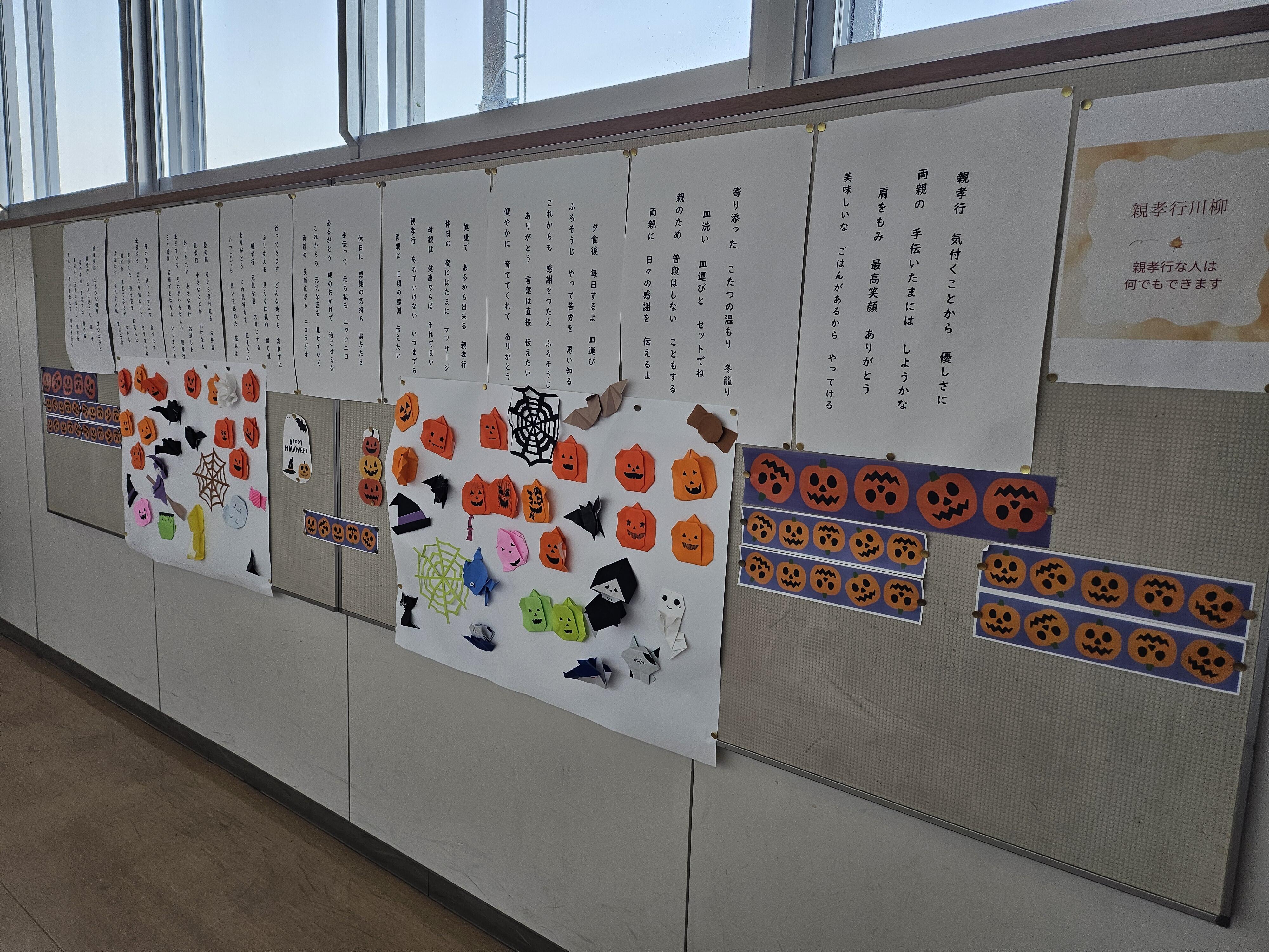 ハロウィン仕様の廊下も参観用に残していましたが、次の装いに変えようと思います。