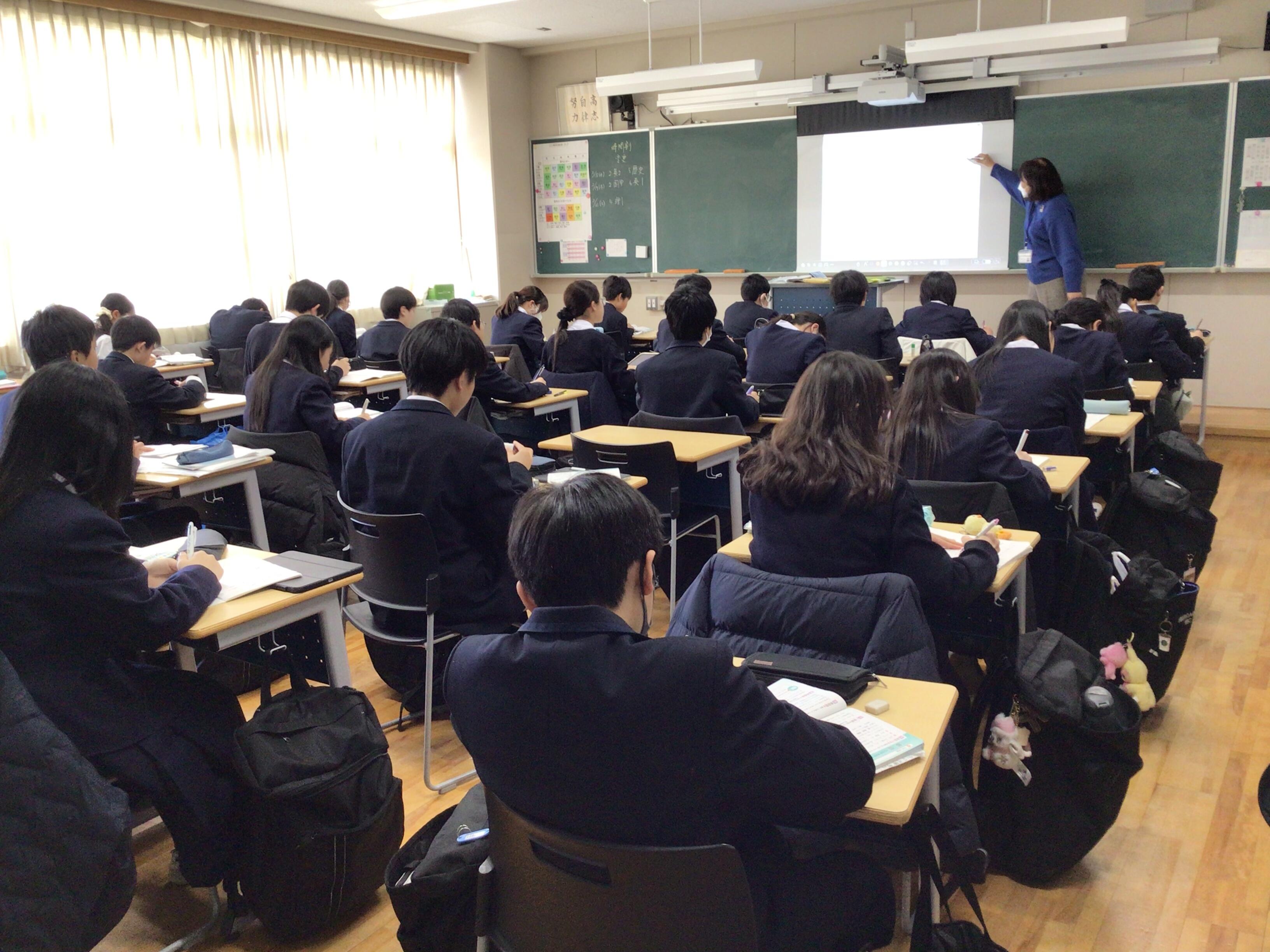 教室では、考査に向けての最終確認や、これまで積み上げてきた学習の発表がおこなわれています。1年生での通常授業はこの1週間で終わりです。しっかりと集中して、大切に授業を受けてください。