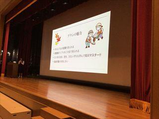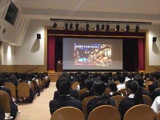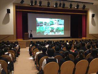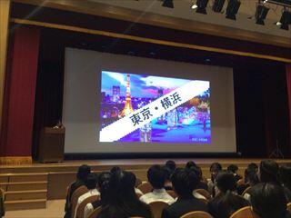 まず2限の時間は講堂に移動し、中3の先輩たちの「研修旅行」についての発表を聞かせて頂きました。