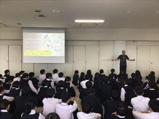 28日(火)の6時間目の後に、74期生みんなで多目的ホールに集まり、本校生徒部主催のSNS講習会を受けました。