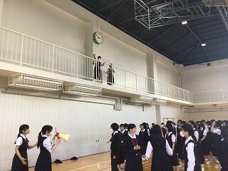 27日(月)の6時間目に、体育大会に向けた結団式を行いました。