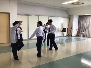 A組。団を率いる中3の先輩に、1年生がダンスの教えを受けています。