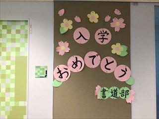 音楽室にいつも貼られている吹奏楽部&合唱部のボードも、いつも書道の作品が掲示されている書道教室の前も、新歓仕様です。